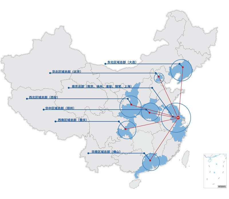 - 國內:以蘇州為中心,成立南京區域第二總部,并積極擴容國內分公司,現已形成八大區域總部。